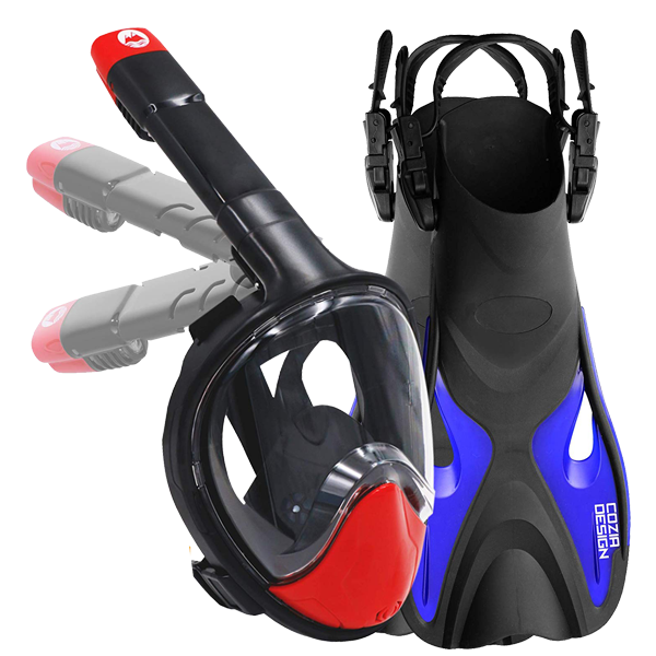 Con la máscara de esnórquel de cara completa 2.0 para adultos nos centramos en mejorar todos los aspectos de tu experiencia de esnórquel y añadir un par de aletas de natación de alta calidad al paquete.