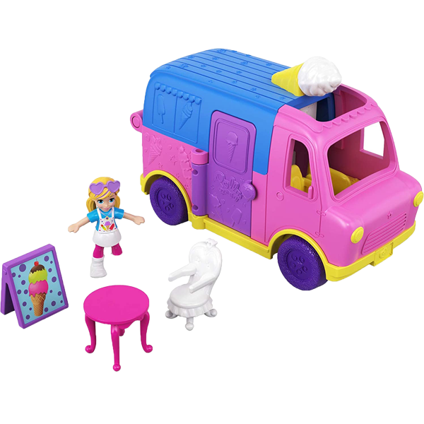 El camión de helados Pollyville está listo para entregar dulces dulces.