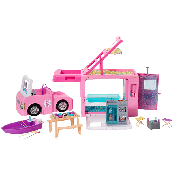 Con múltiples transformaciones, 3 vehículos, 5 espacios habitables, juego de 360 grados y 50 accesorios, el Barbie 3 en 1 DreamCamper anima a los jóvenes a explorar aventuras al aire libre y llevar sus sueños de viaje a la vida.
