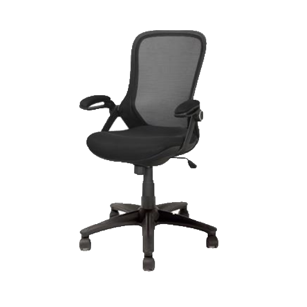 Silla semi ejecutiva en malla con descansabrazos abatibles.