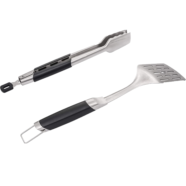 Ningún asador de patio debe ir sin nuestro conjunto de herramientas para barbacoa Char-Broil de 3 piezas. Viene con todo lo que necesita, incluido un cepillo especial para hilvanar a la barbacoa, una espátula de acero inoxidable y nuestras pinzas de agarre cómodo. Y las asas extendidas te mantienen alejado del calor.