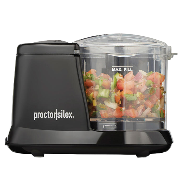 Corte en dados los ingredientes de la receta con este picador de alimentos blanco de Proctor Silex. Con solo una velocidad de cuchilla, esta picadora de alimentos utiliza un conveniente control de pulso de un solo botón.