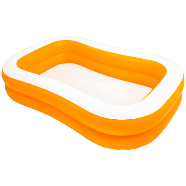 • Piscina hinchable Intex rectangular, medidas: 229x152x48 cm y capacidad para 600 litros/agua. • Piscina desmontable con forma rectangular de 2 anillos, está fabricada de vinilo resistente. • La piscina es de color naranja en la parte exterior y blanca en el interior. Incluye válvula para un rápido hinchado/deshinchado. • Diseñada para ser utilizado por un adulto y 2 niños mayores de 6 años. • La piscina Intex incluye un tapón de drenaje para un fácil llenado y vaciado y un kit de parches para reparar pequeños poros o pinchazos.