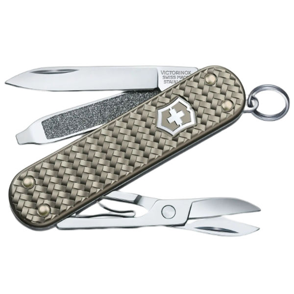 Hemos llevado nuestra navaja de bolsillo Classic Alox a nuevos y emocionantes niveles con nuestro diseño Precious Alox. Con un patrón tramado que agrega textura y un estilo contemporáneo, esta navaja de bolsillo se ofrece en una selección de excepcionales y elegantes colores. Con cinco útiles funciones, esta es una navaja que permite trabajar duro, pero que tiene apariencia elegante y siempre está a la moda.