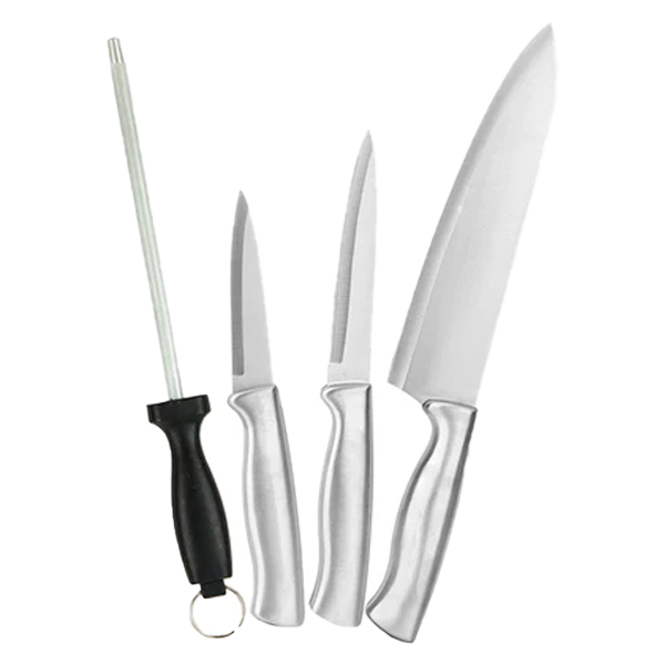 cuchillos y un afilador, compuestos de acero inoxidable, incluye un Cuchillo de