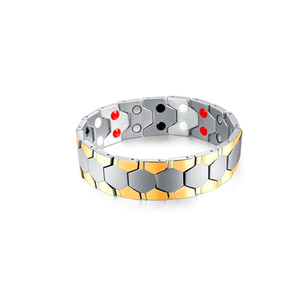 Esta pulsera está fabricada con Acero Quirúrgico e imanes de Neodimio. No contiene Niquel, es antialérgica y no produce ningún tipo de reacción. Durable, no requiere de cuidados ni mantención, se usa 24 horas 365 días y tienen un altísimo poder magnético.
