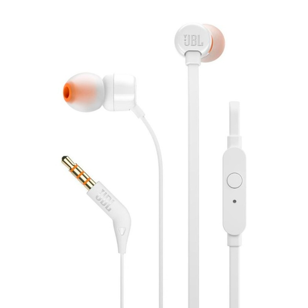Le presentamos los auriculares intraaurales JBL TUNE110. Son ligeros, cómodos y compactos. Dentro de la carcasa de auricular duradera, un par de unidades de 9 mm ofrecen bajos notables y reproducen el sonido Pure Bass de JBL que ha experimentado en salas de conciertos, pabellones y estudios de grabación de todo el mundo. Además, el control remoto con un solo botón y el cable plano sin enredos le permiten controlar la reproducción de la música y responder a llamadas sobre la marcha con un micrófono integrado. Todo ello hace que los JBL TUNE110 sean su compañero diario en el trabajo, en el hogar y de un lado a otro.