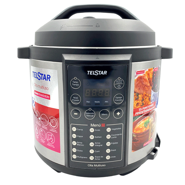 • Capacidad: 6L. • Cocina hasta 70% más rápido. • Indicador de presión digital. • 15 funciones predeterminadas. • Cuerpo de acero inoxidable. • Sistema de seguridad de bloqueo. • Fácil de lavar y usar. • Olla interior antiadherente extraíble. • No incluye tapa de vidrio. • Temporizador de 24 horas. • Color: Negro/Acero