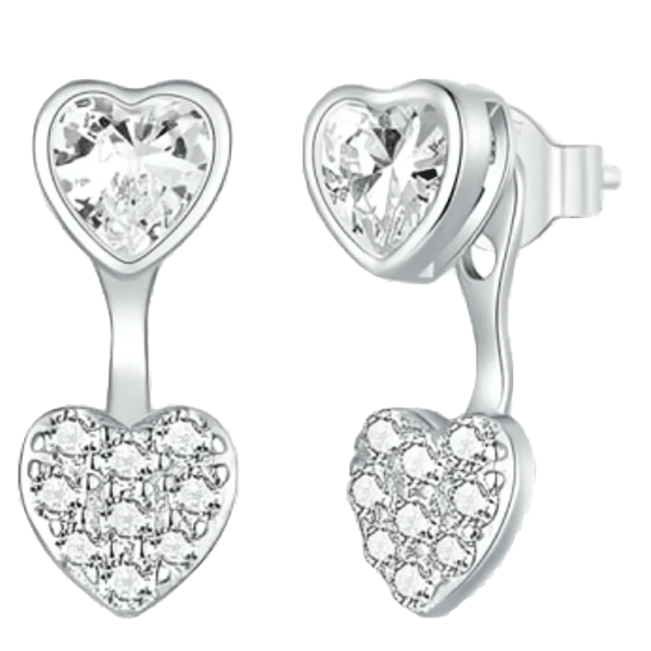 aretes, con su diseño en forma de dos corazones entrelazados, están adornados