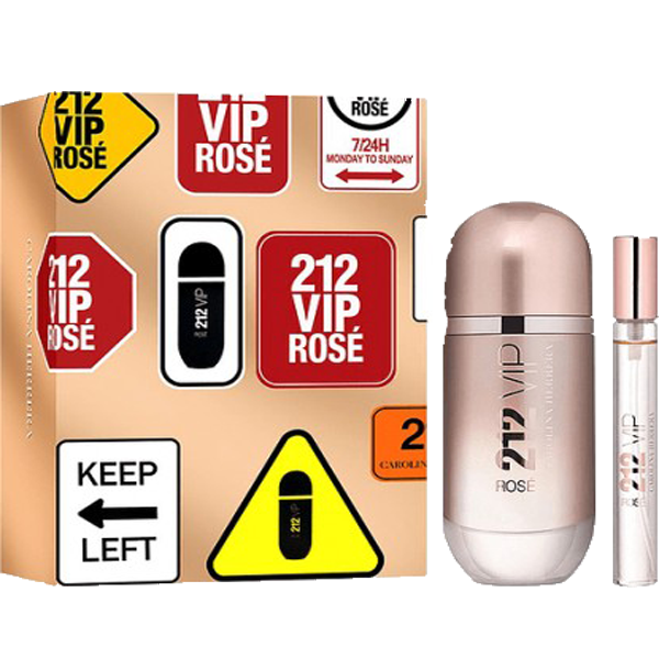 ESTUCHE CAROLINA HERRERA 212 VIP ROSE MUJER 2PZS 80ML EDT + 10ML EDT