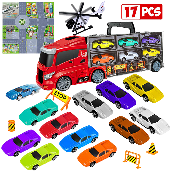 Esta gran camioneta contiene 11 mini autos de carreras coloridos, un helicóptero, un mapa panorámico de la ciudad y barreras viales. Los niños estarán extremadamente entusiasmados de organizar sus propios juguetes de autos de transporte y disfrutarán de juegos de rol con amigos para desarrollar la coordinación mano-ojo.